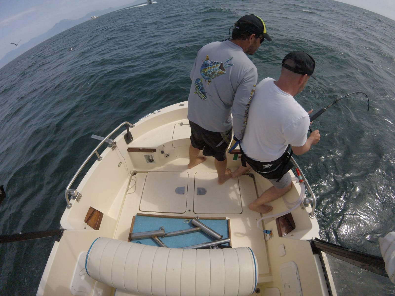 Pesca in deriva con pasturazione continua per attirare e combattere tonni di dimensioni estrema