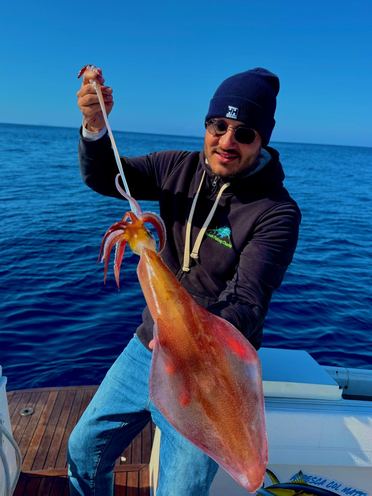 Pesca verticale con jigs specifici per calamari, basata su movimenti ritmati e sensibilità per percepire le tocche